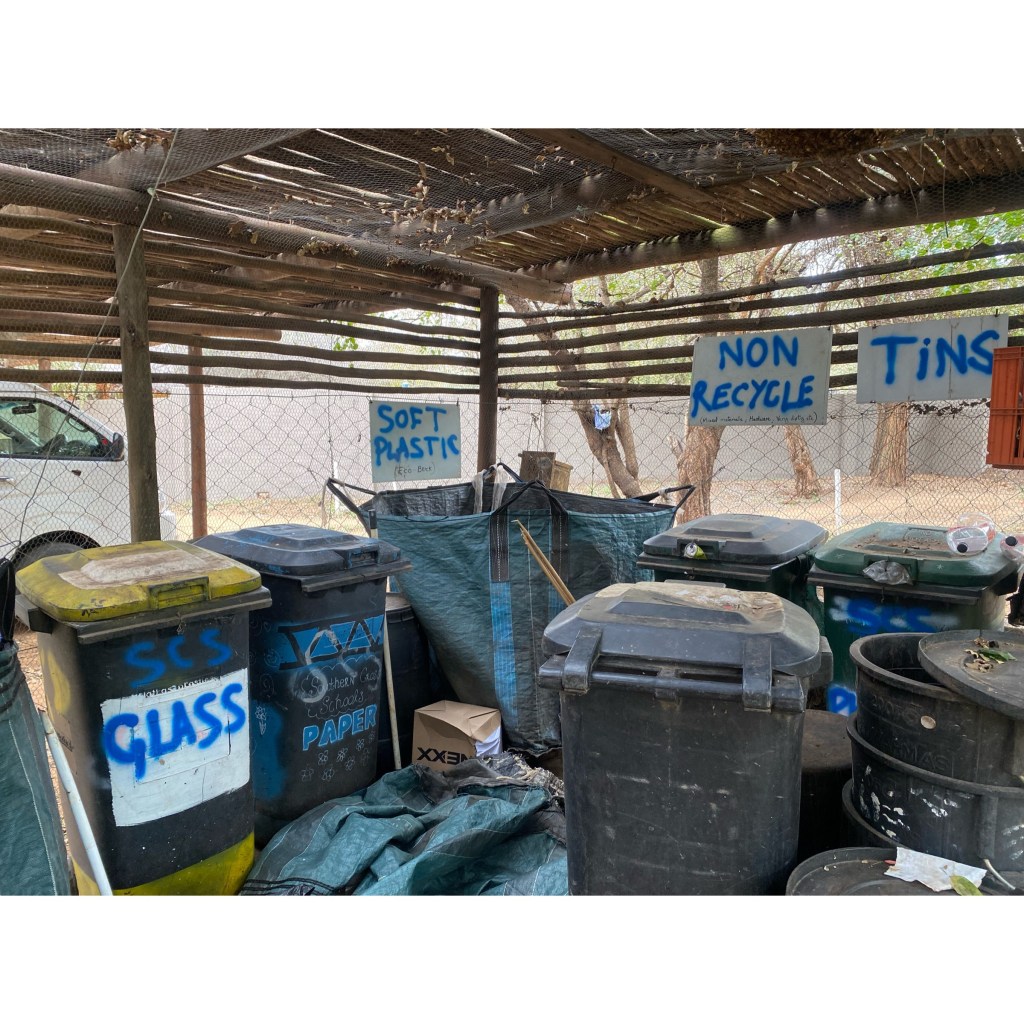 In the sorting area, they have a bin for eco-bricking, which is a plastic bottle densely packed with used plastic. Ecobricks can be used to produce various items, including furniture, garden walls and other structures.