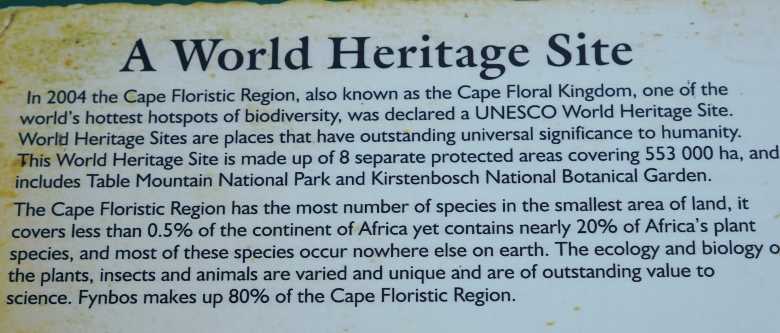 Today, we toured Table Mountain and got to see some great views of the city from the top. “Table Mountain National Park is part of the Cape Floristic Region World Heritage Site. Rare and endangered plants make this area a biodiversity hotspot. Fynbos (fine bush) is an ancient and fire dependent vegetation which needs to burn every 15 years to stimulate growth and remain healthy. Proteas can be seen most places in the park while some very special and rare plants are present in the mountain wetlands and in Noordhoek.” (https://www.nature-reserve.co.za/cape-peninsula-national-park.html)
